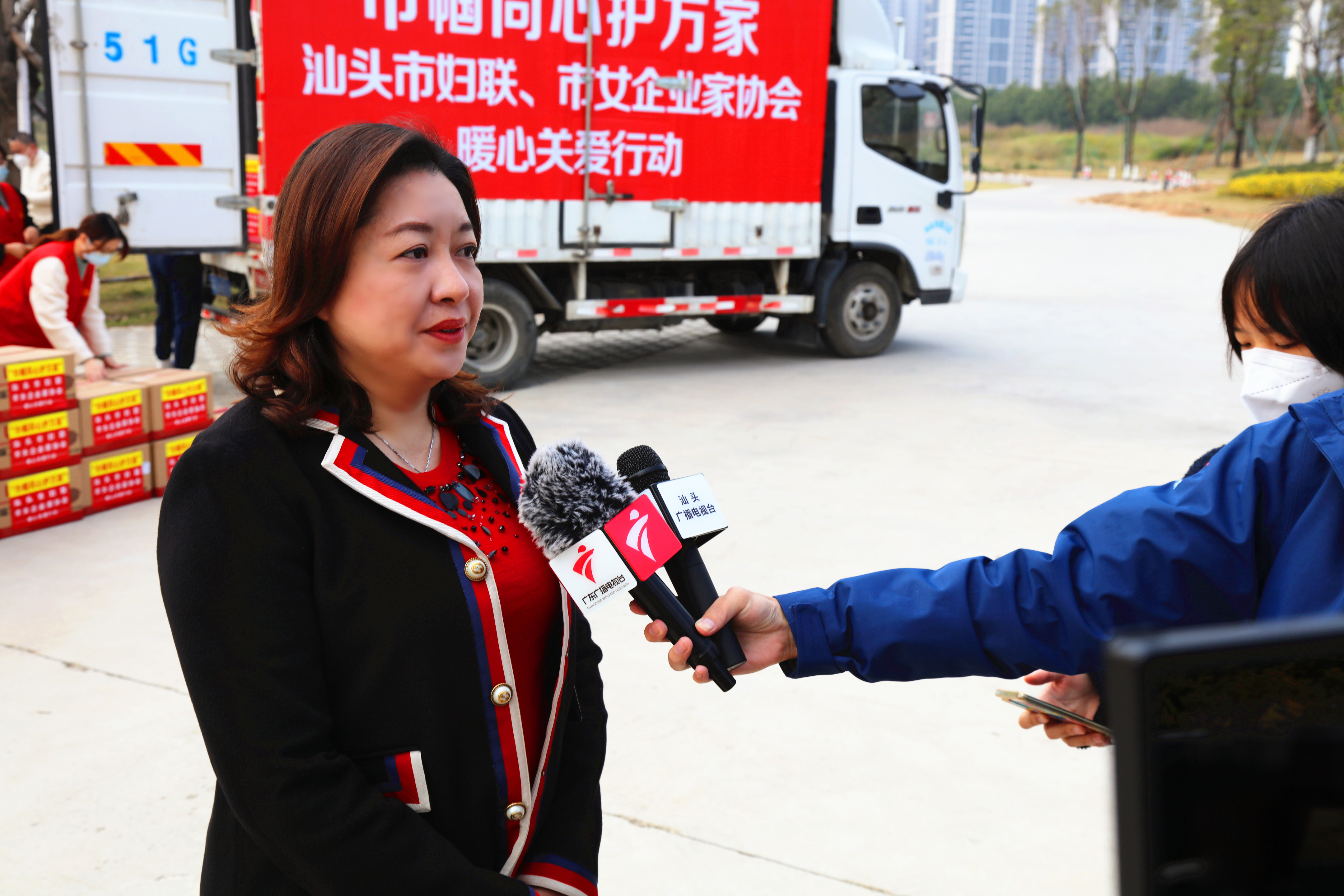 我司吴莉翔总经理作为市女企业家协会会长参加本次活动并接受了广东卫视、汕头电视台记者的采访,她说,“我会在接到汕头市妇联的号召之后,第一时间就筹备了一批物资,在这个特殊时期,我们有责任和义务去尽我们自己的一份力量,帮助有需要的妇女群众,为疫情防控工作贡献巾帼力量。我相信汕头是一座有爱心有温度的城市,在汕头市委、市政府的正确领导下,在全市人民的共同努力下,我们很快就会迎来春暖花开的局面”。