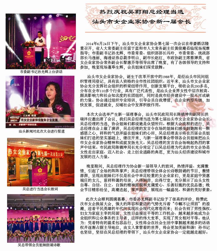 我司吴莉翔总经理当选汕头市女企业家协会会长