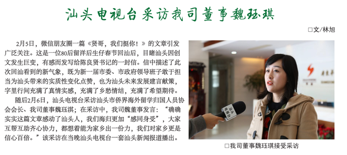 汕头电视台采访我司董事魏珏淇