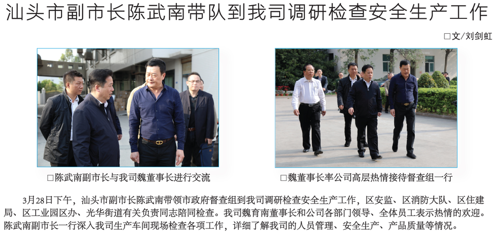汕头市副市长陈武南带队到我司调研检查安全生产工作